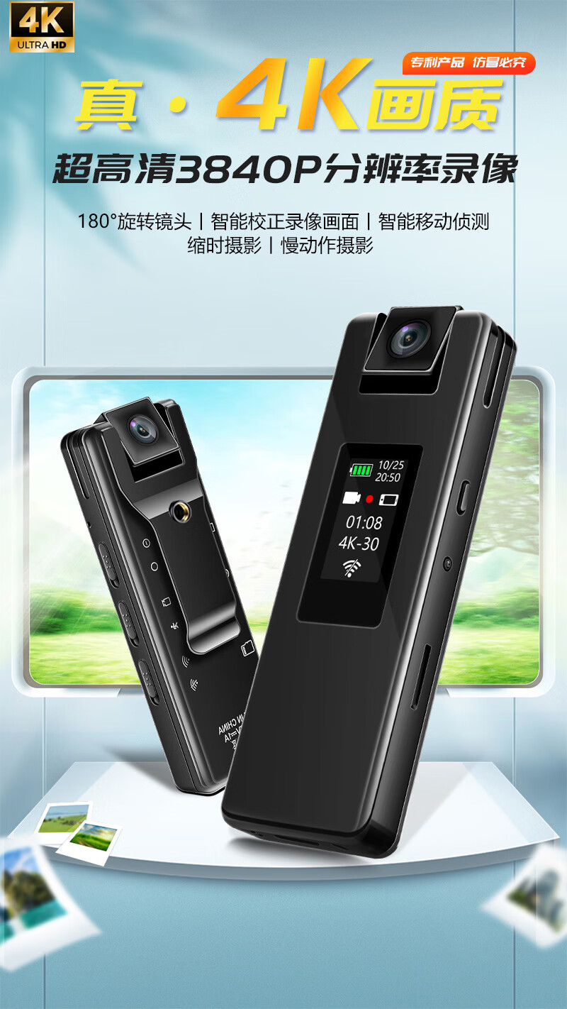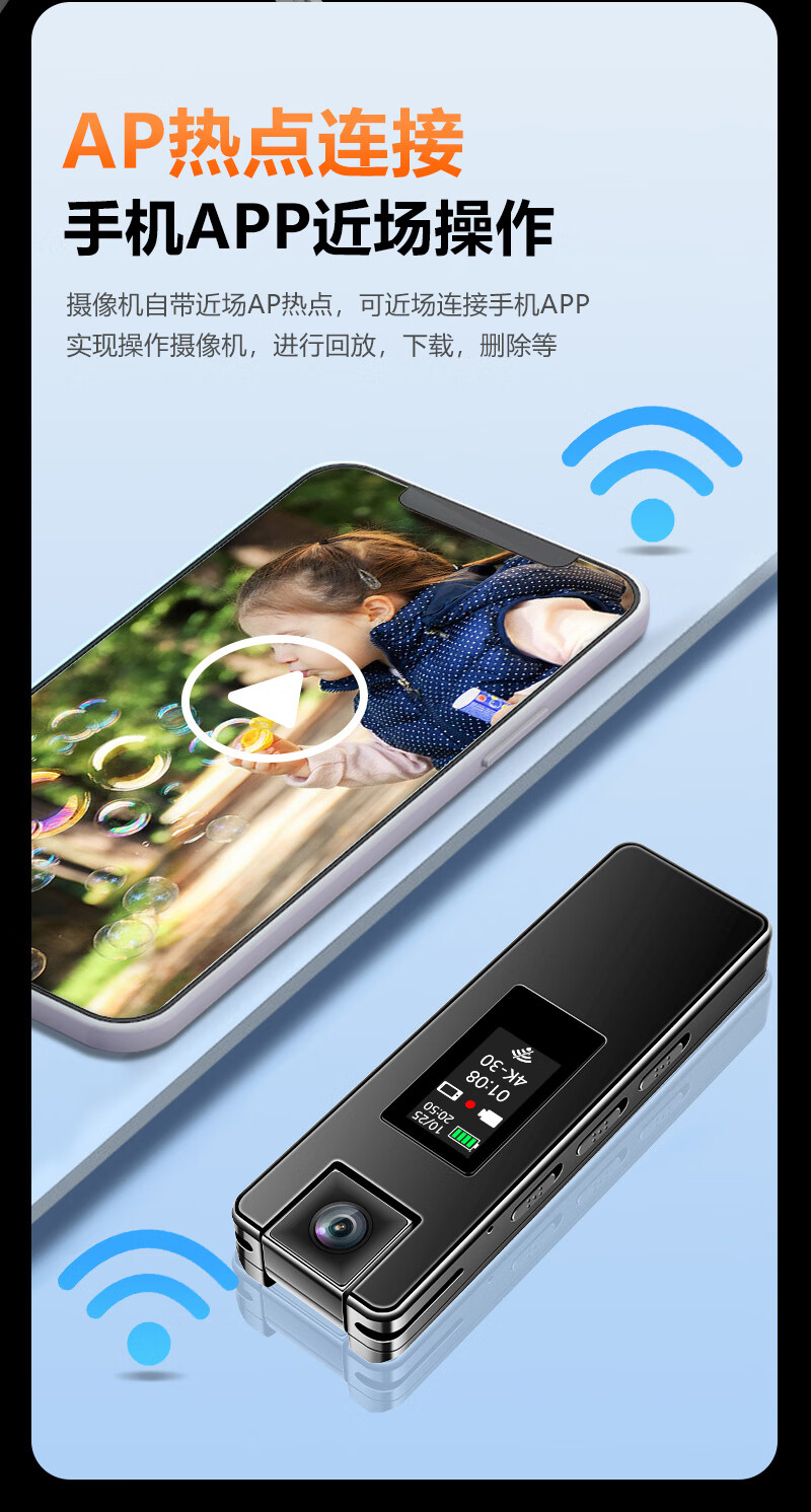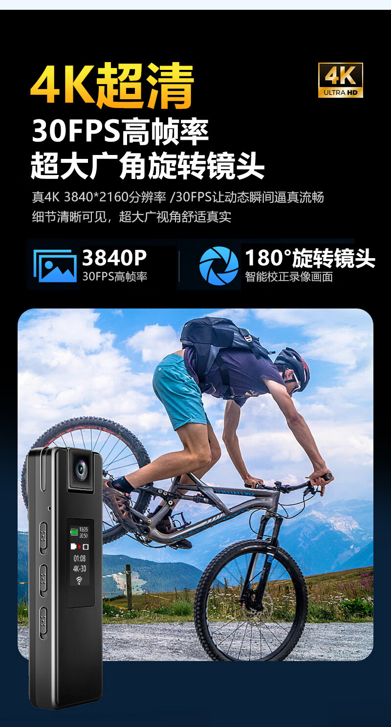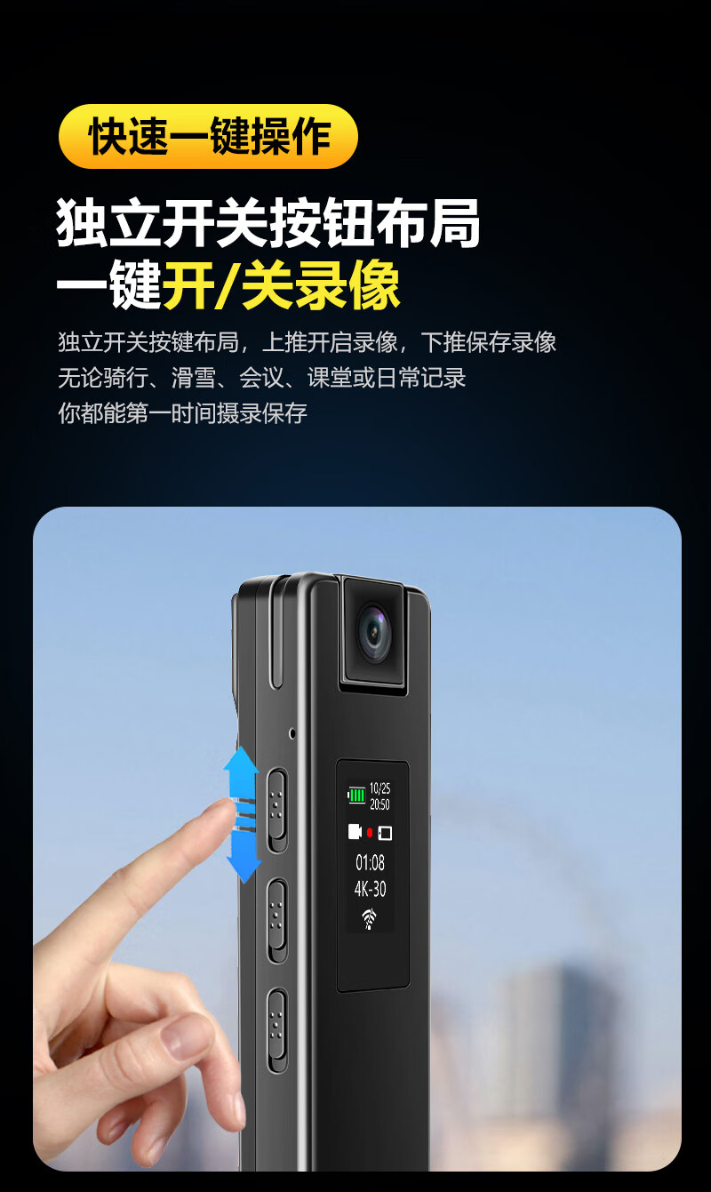 苏维随身4K记录仪高清夜视视频录影机胸前佩戴便携式摄像头远距离wifi热点监控摄像机DV拍摄器录像神器 超清真4K3840P支持(WiFi热点+单机录像) 无内存版