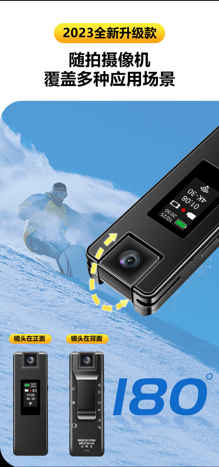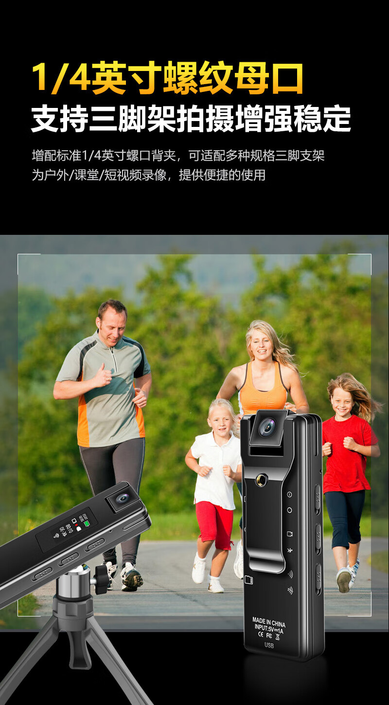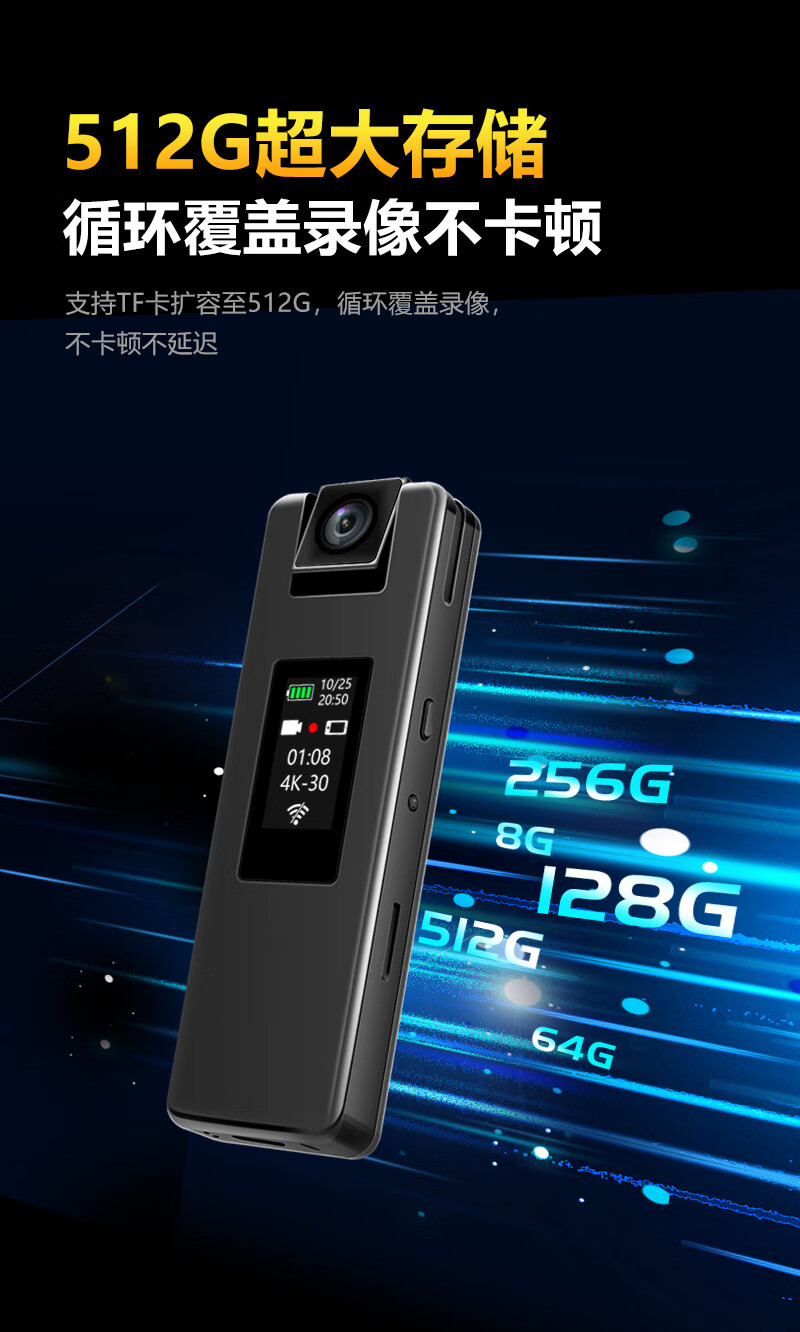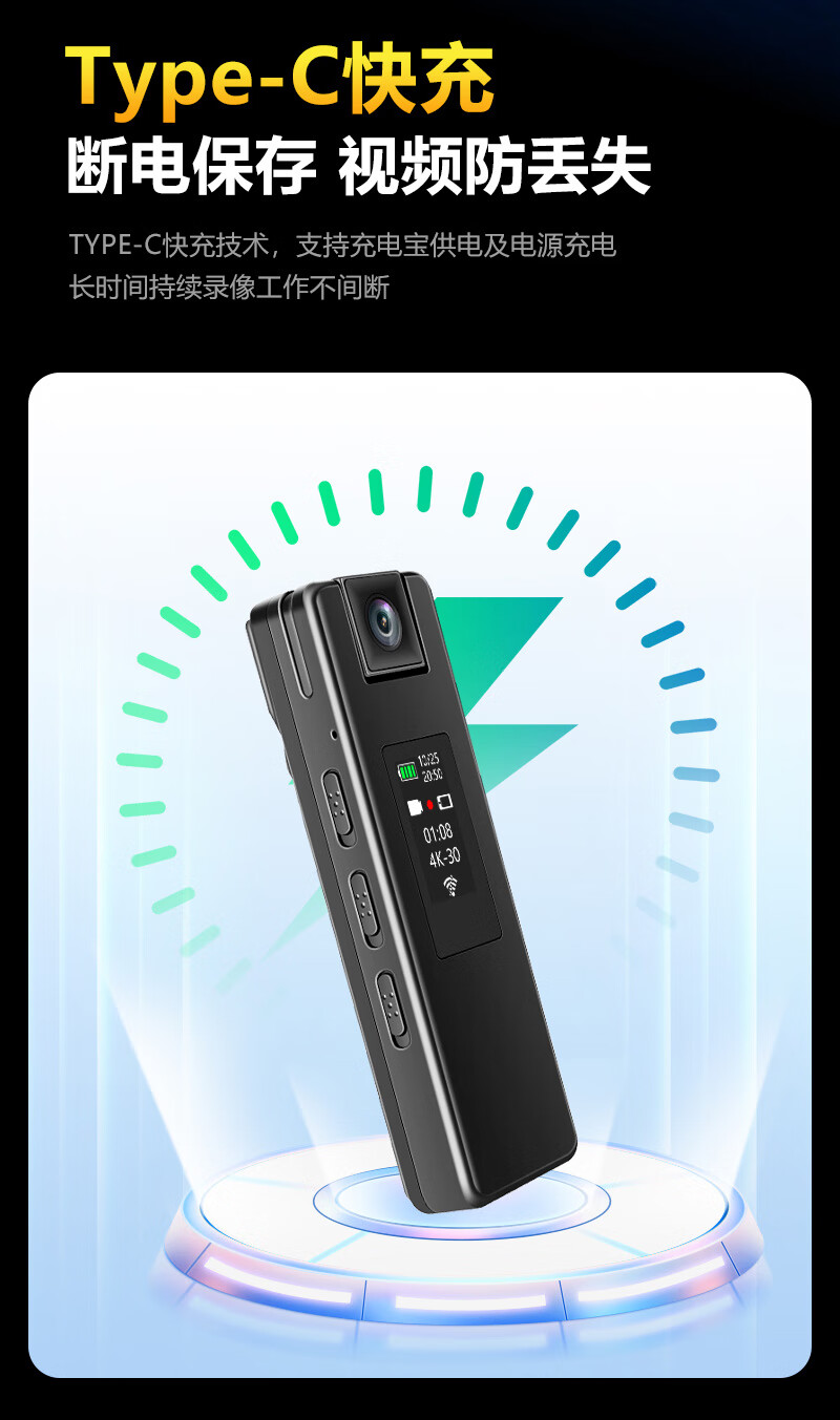 苏维随身4K记录仪高清夜视视频录影机胸前佩戴便携式摄像头远距离wifi热点监控摄像机DV拍摄器录像神器 超清真4K3840P支持(WiFi热点+单机录像) 无内存版