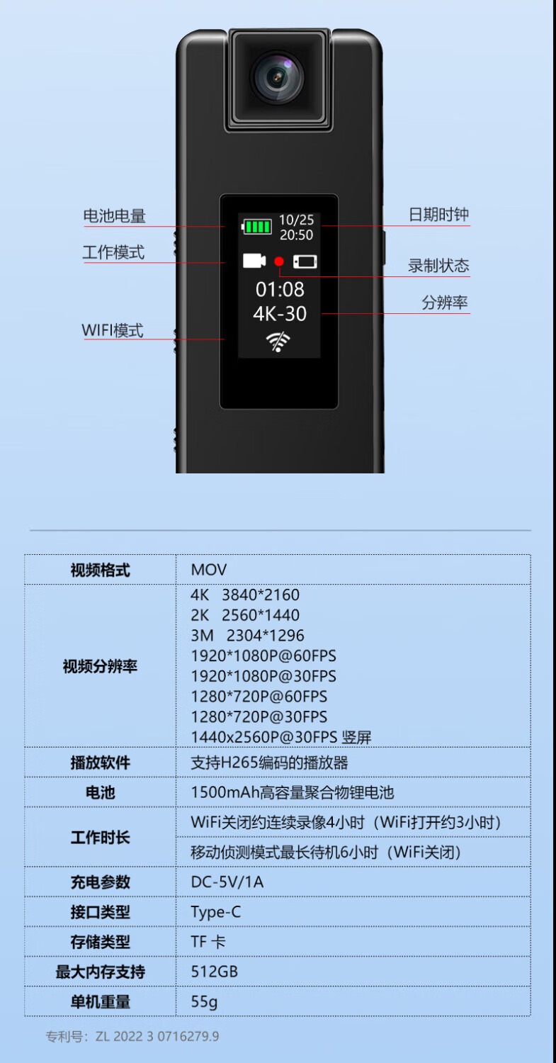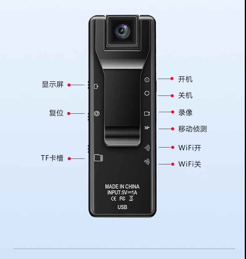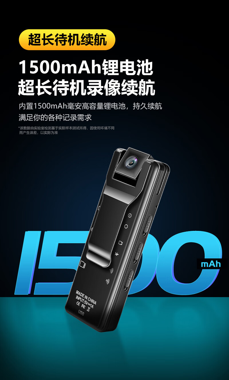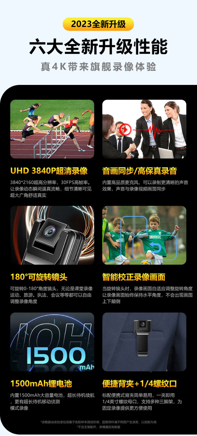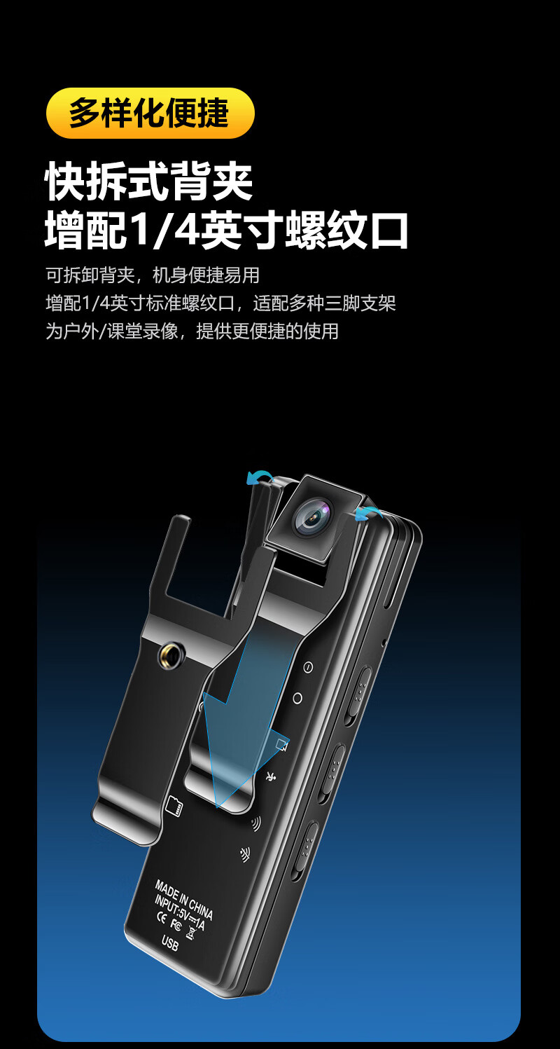 苏维随身4K记录仪高清夜视视频录影机胸前佩戴便携式摄像头远距离wifi热点监控摄像机DV拍摄器录像神器 超清真4K3840P支持(WiFi热点+单机录像) 无内存版