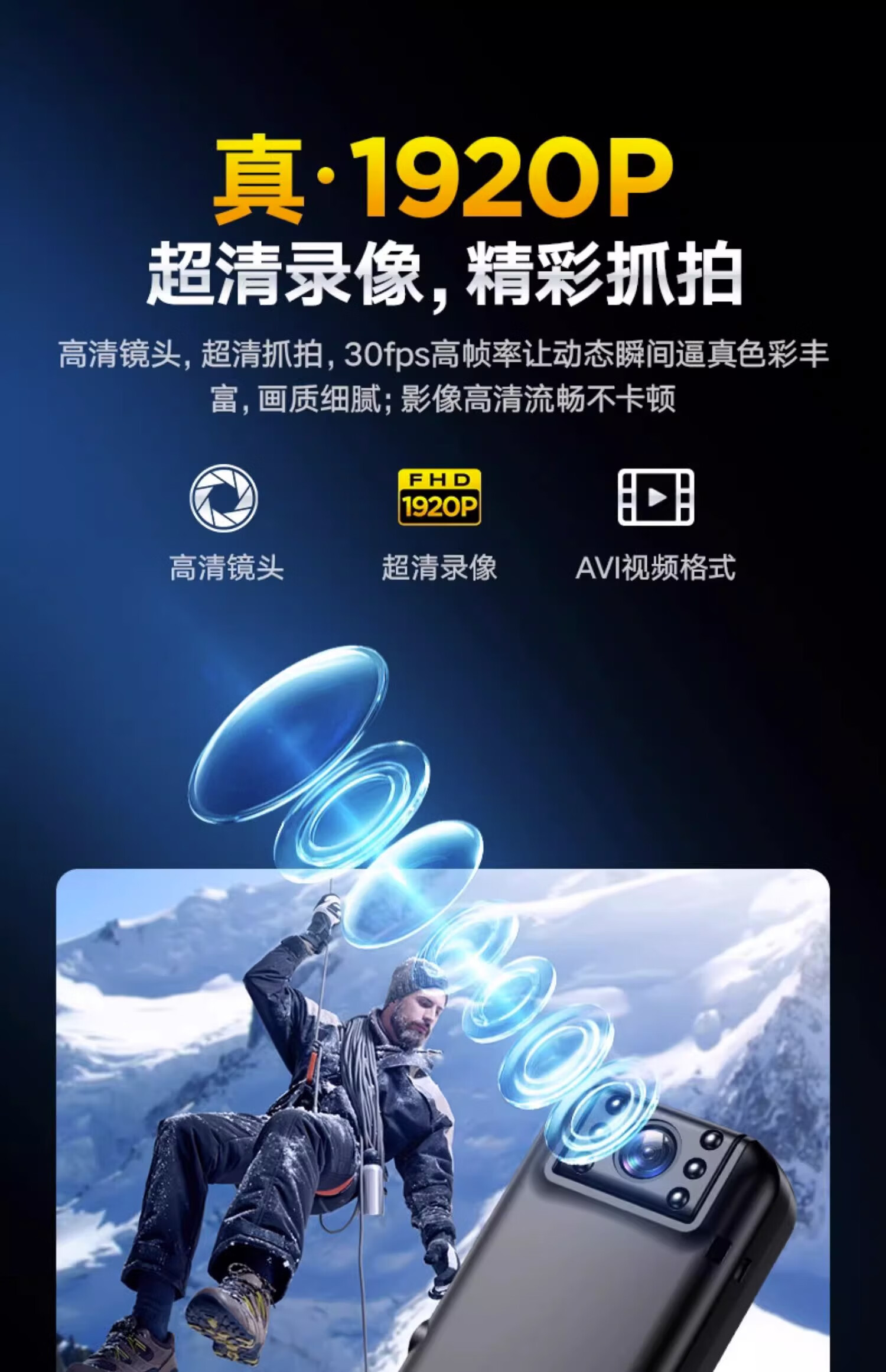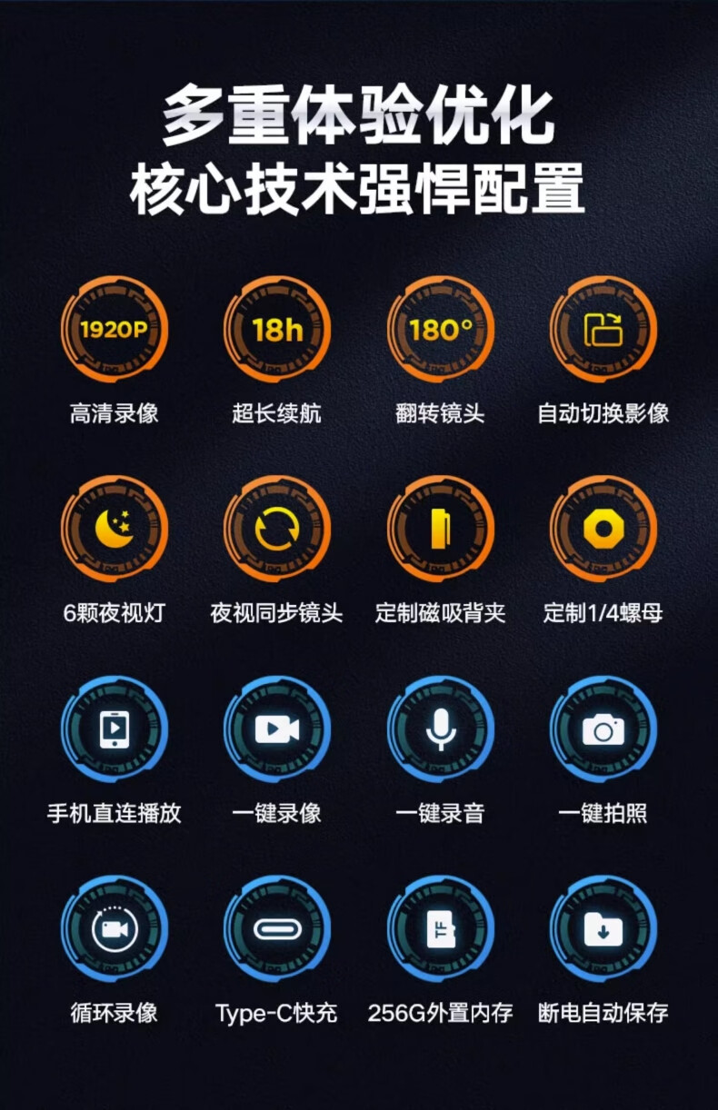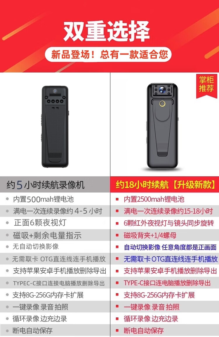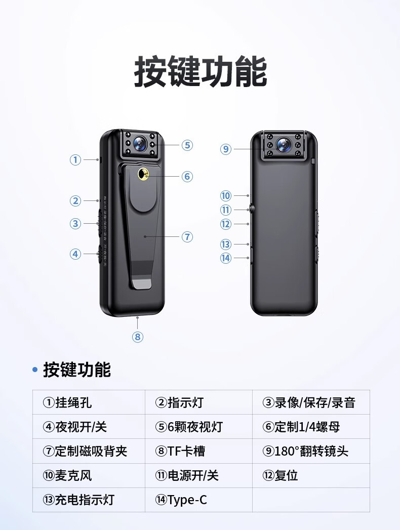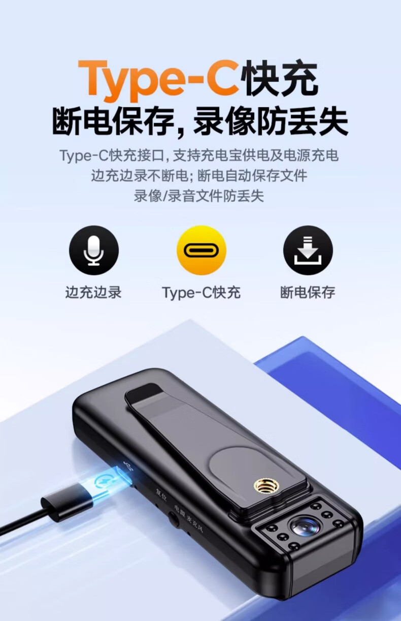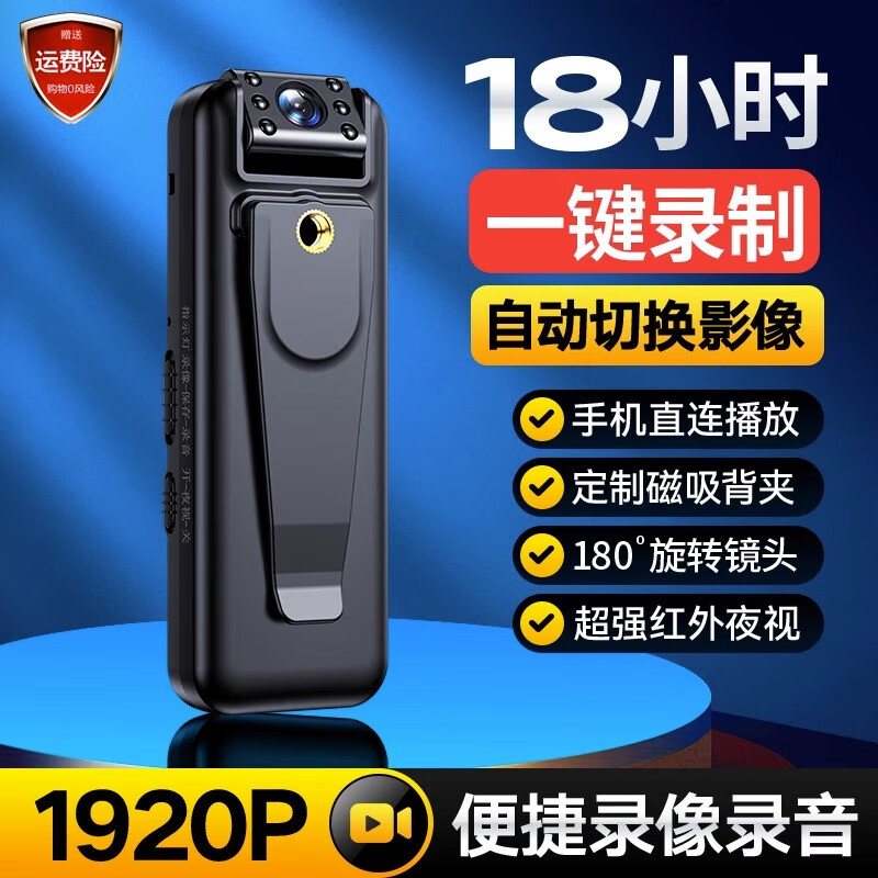 苏维1080p高清会议记录仪DV摄像机摄像头高清家用监控户外记录仪随身便携式录像机穿戴背夹式录像神器 高清夜视直录版 无内存版