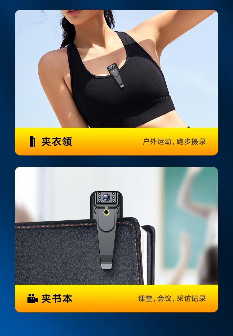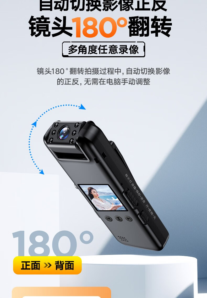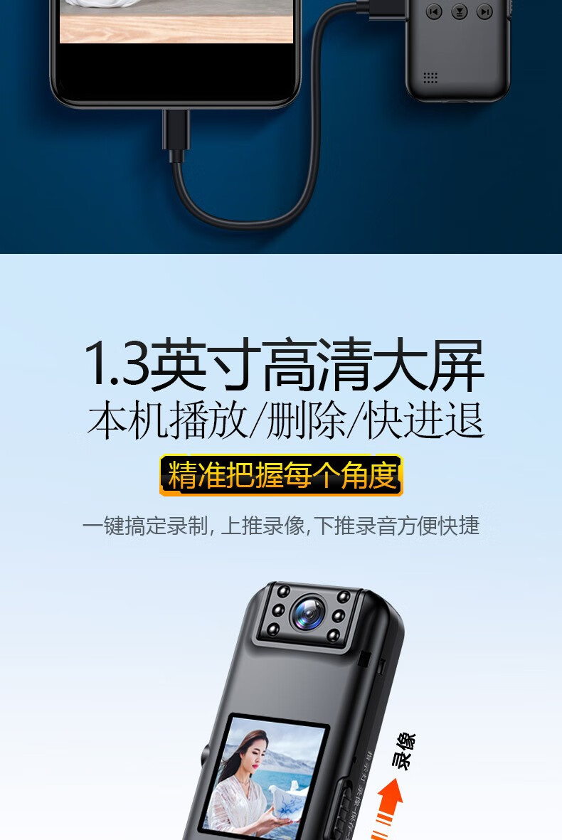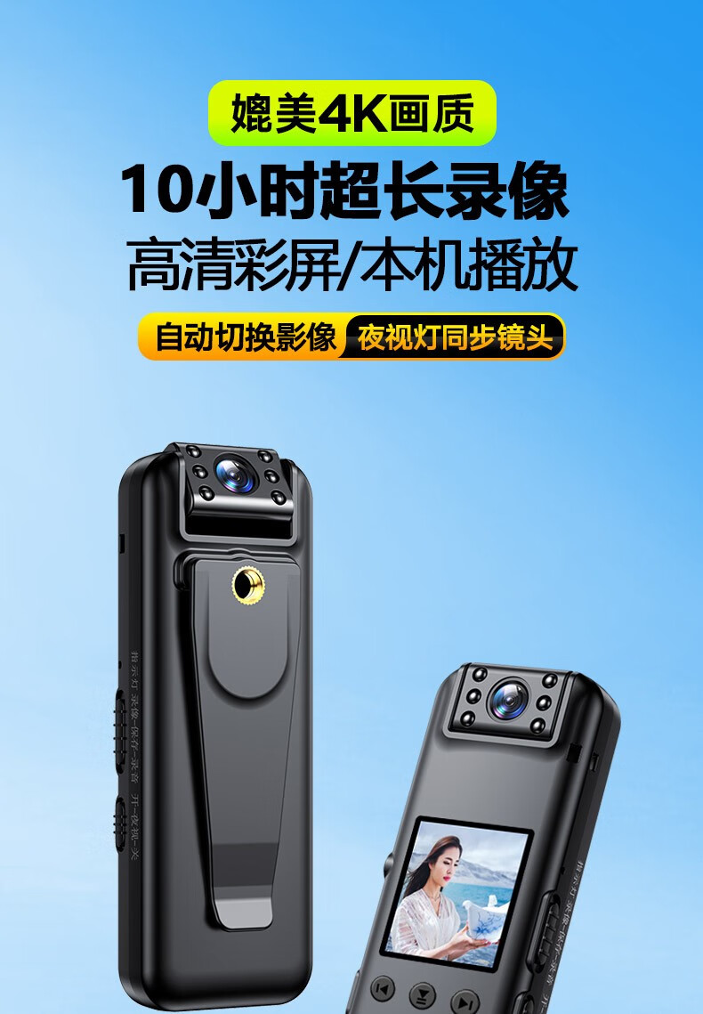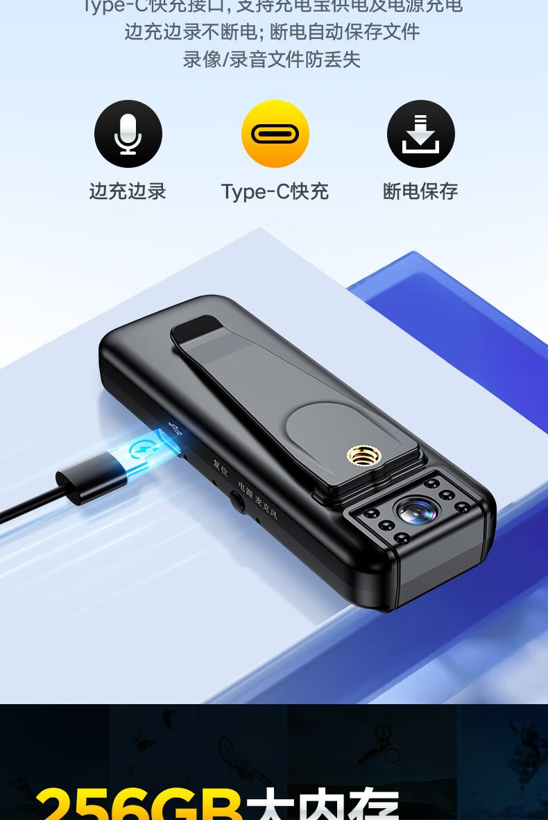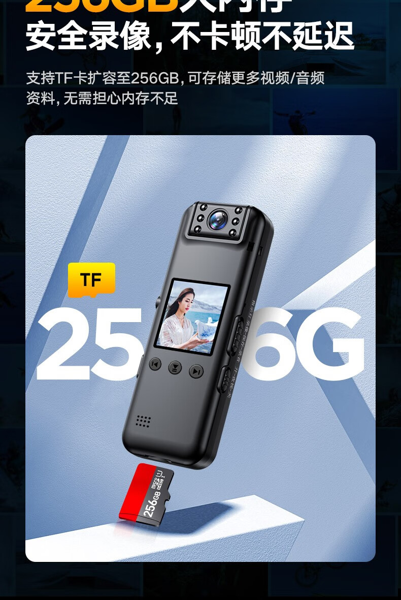 高清摄像头穿戴式会议记录1080P摄像机夜视随身户外会议记录仪背夹式录像机便携式屏幕播放一体机 高清带夜视边看边录 256GB内存版