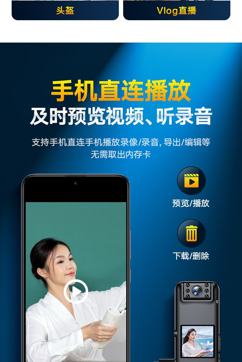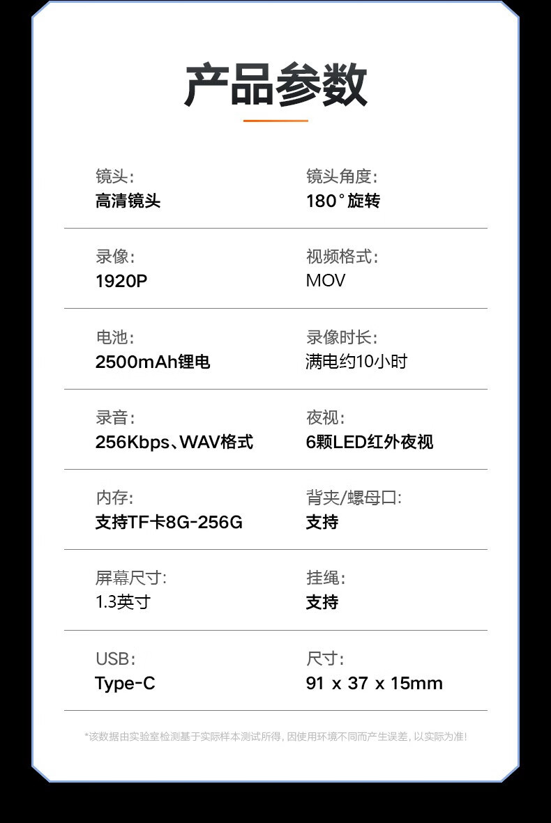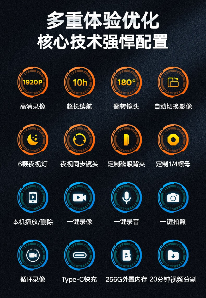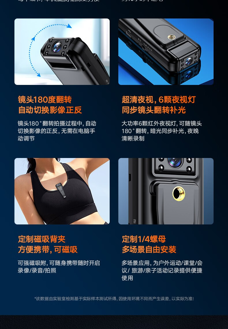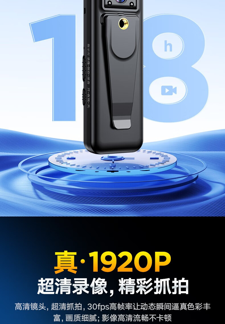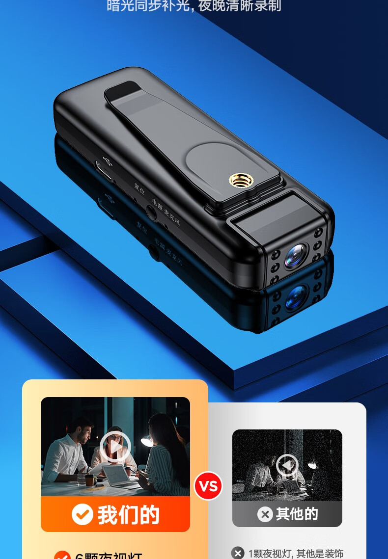 高清摄像头穿戴式会议记录1080P摄像机夜视随身户外会议记录仪背夹式录像机便携式屏幕播放一体机 高清带夜视边看边录 256GB内存版