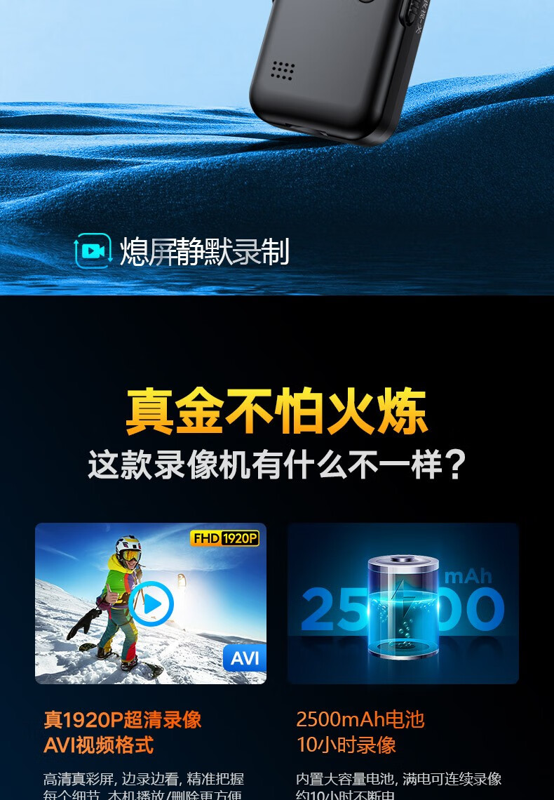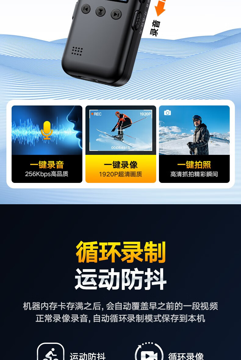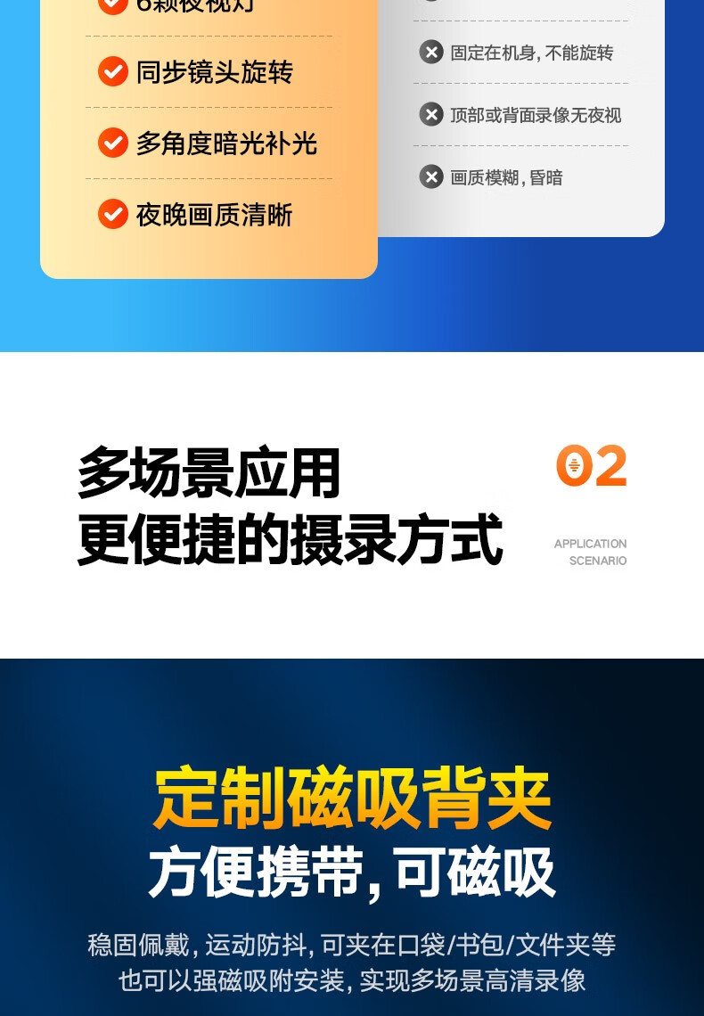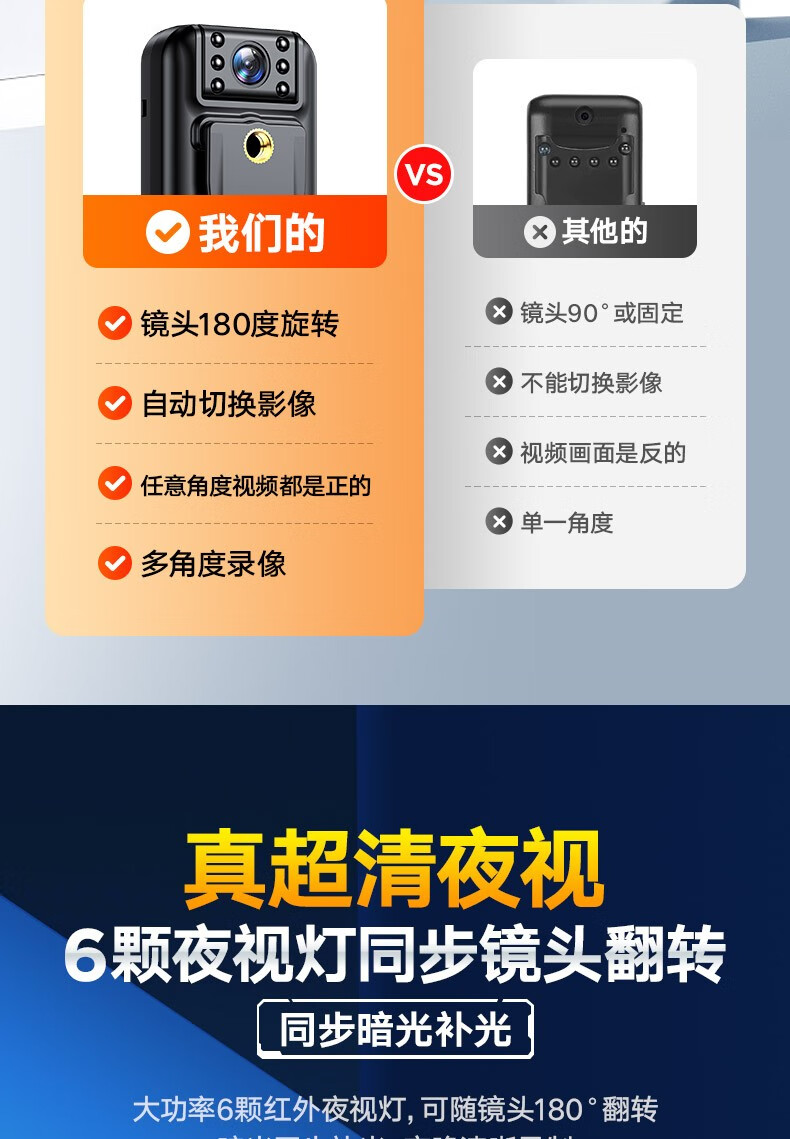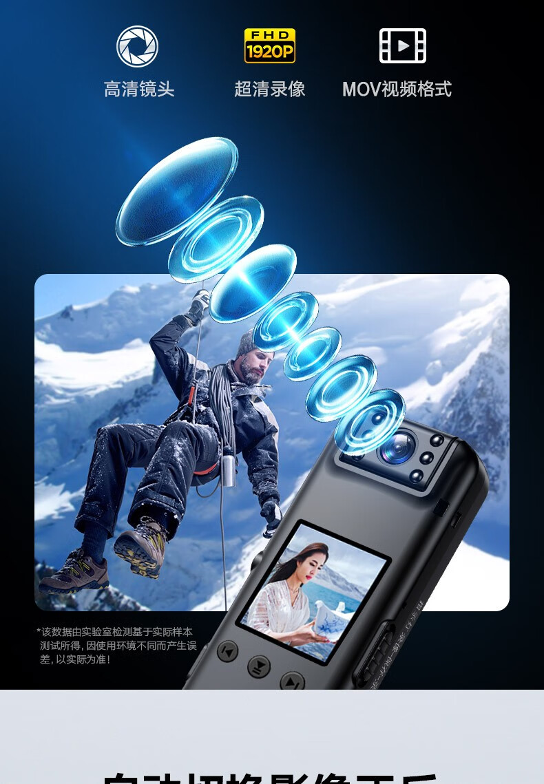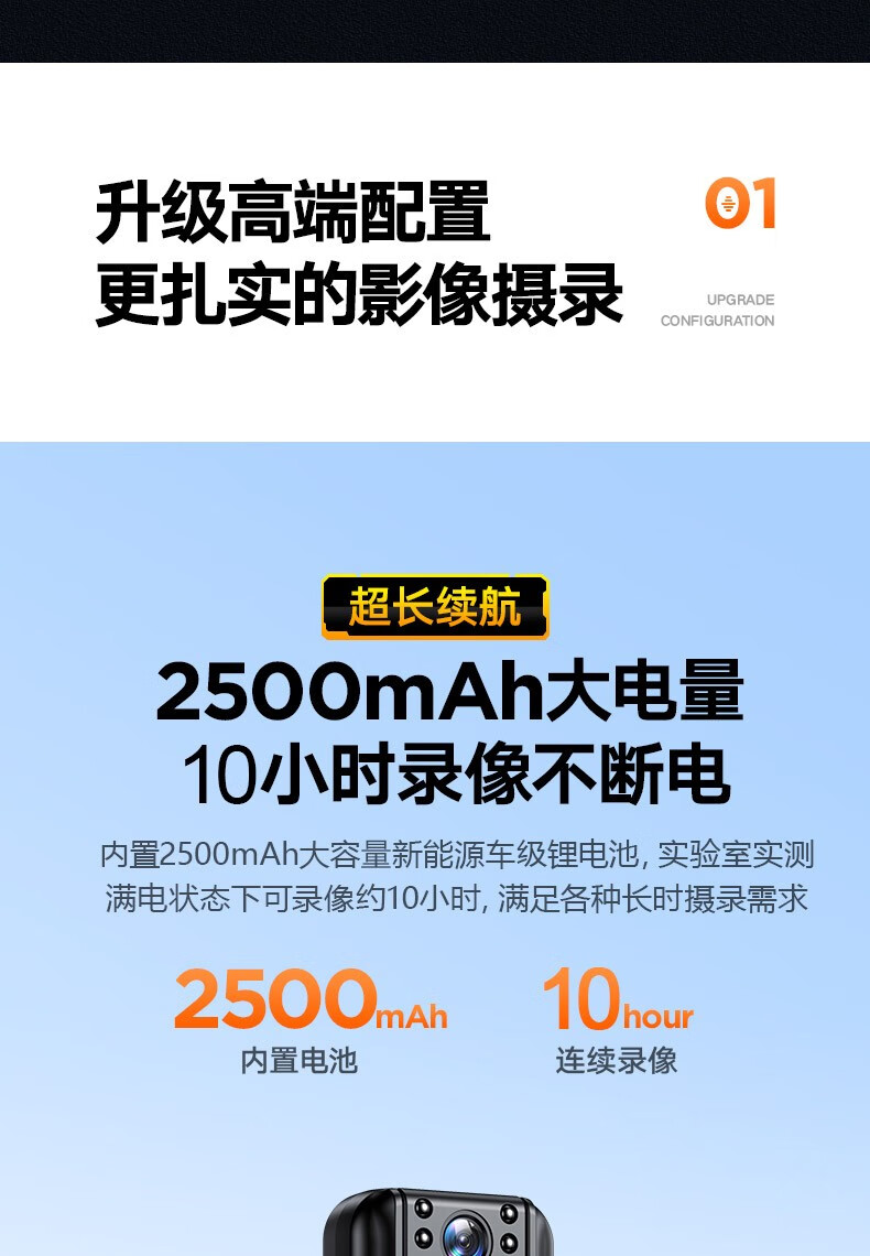 高清摄像头穿戴式会议记录1080P摄像机夜视随身户外会议记录仪背夹式录像机便携式屏幕播放一体机 高清带夜视边看边录 256GB内存版