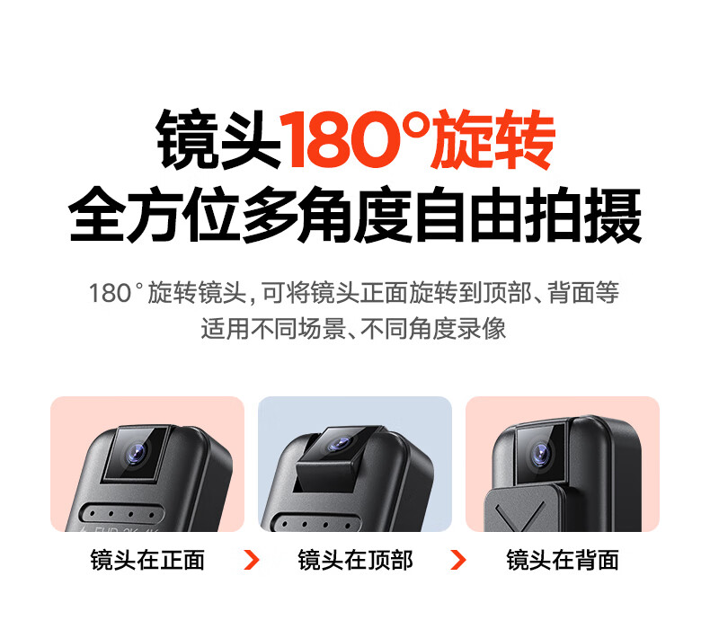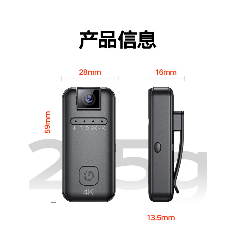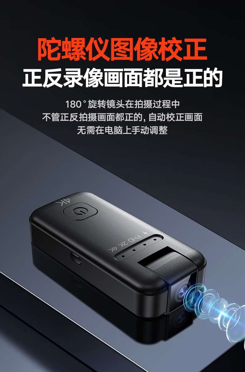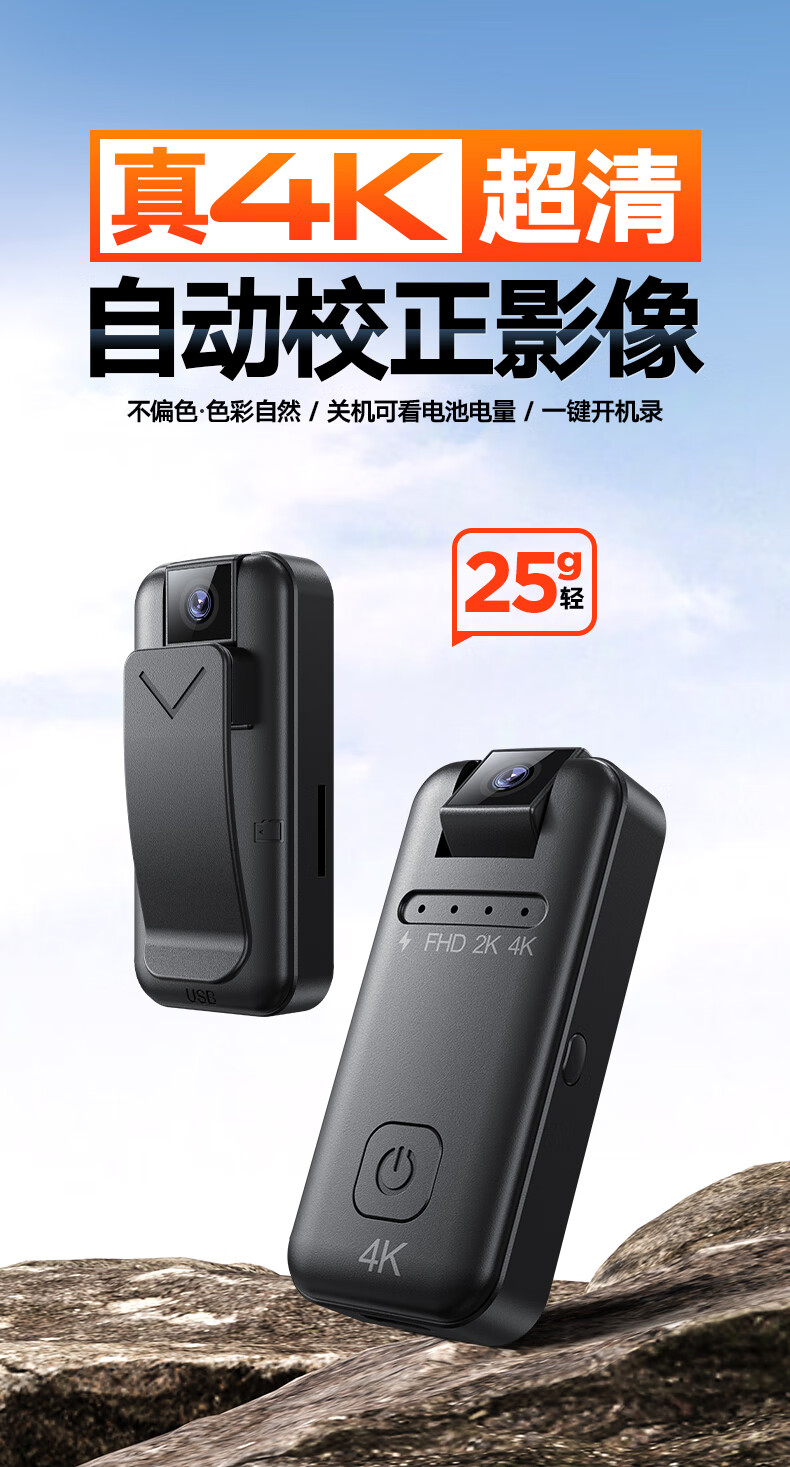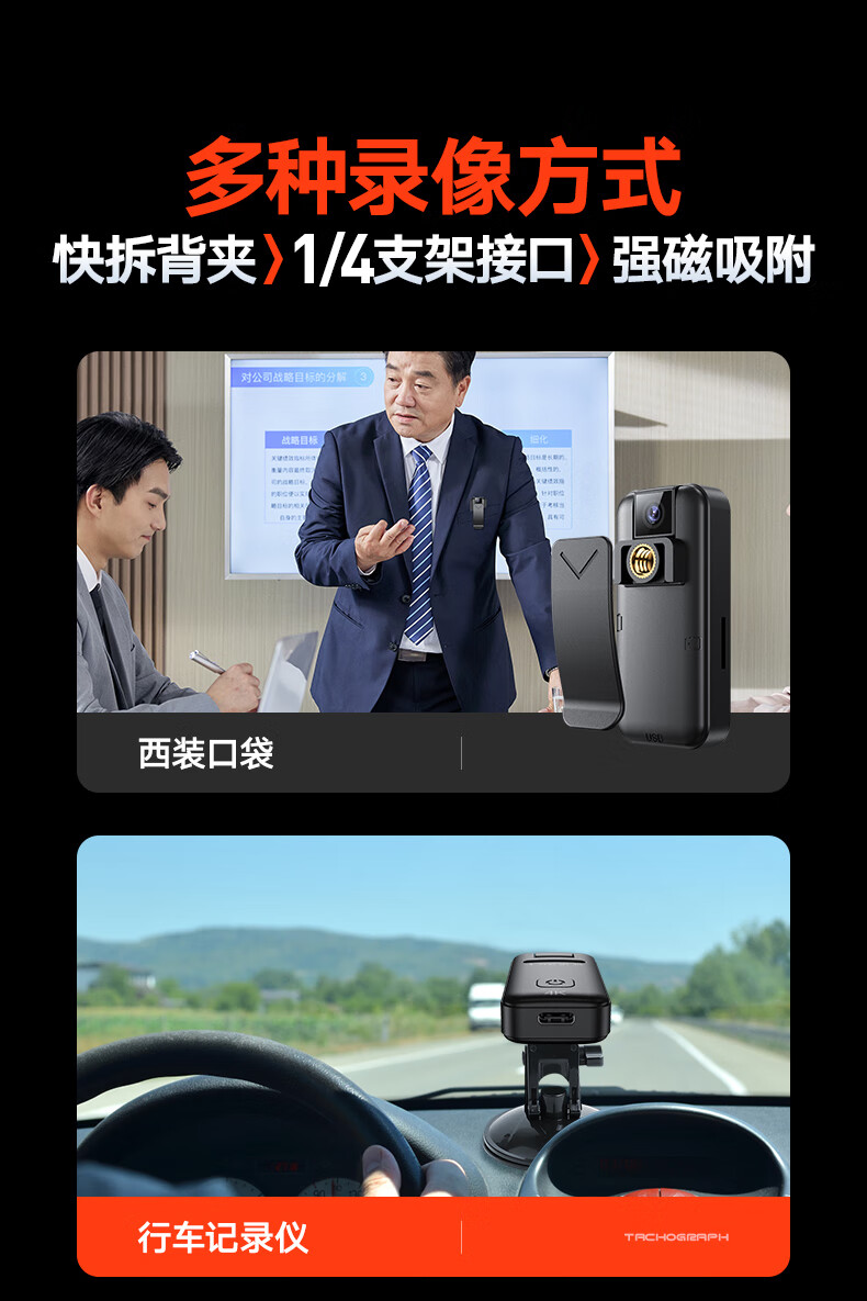 苏维高清4K运动摄像机摄像头随身记录仪便携式骑行摩托车户外录像机穿戴领夹式胸前口袋取证录像神器 4K高清摄像机 128GB内存版