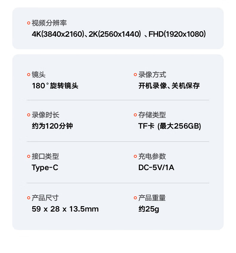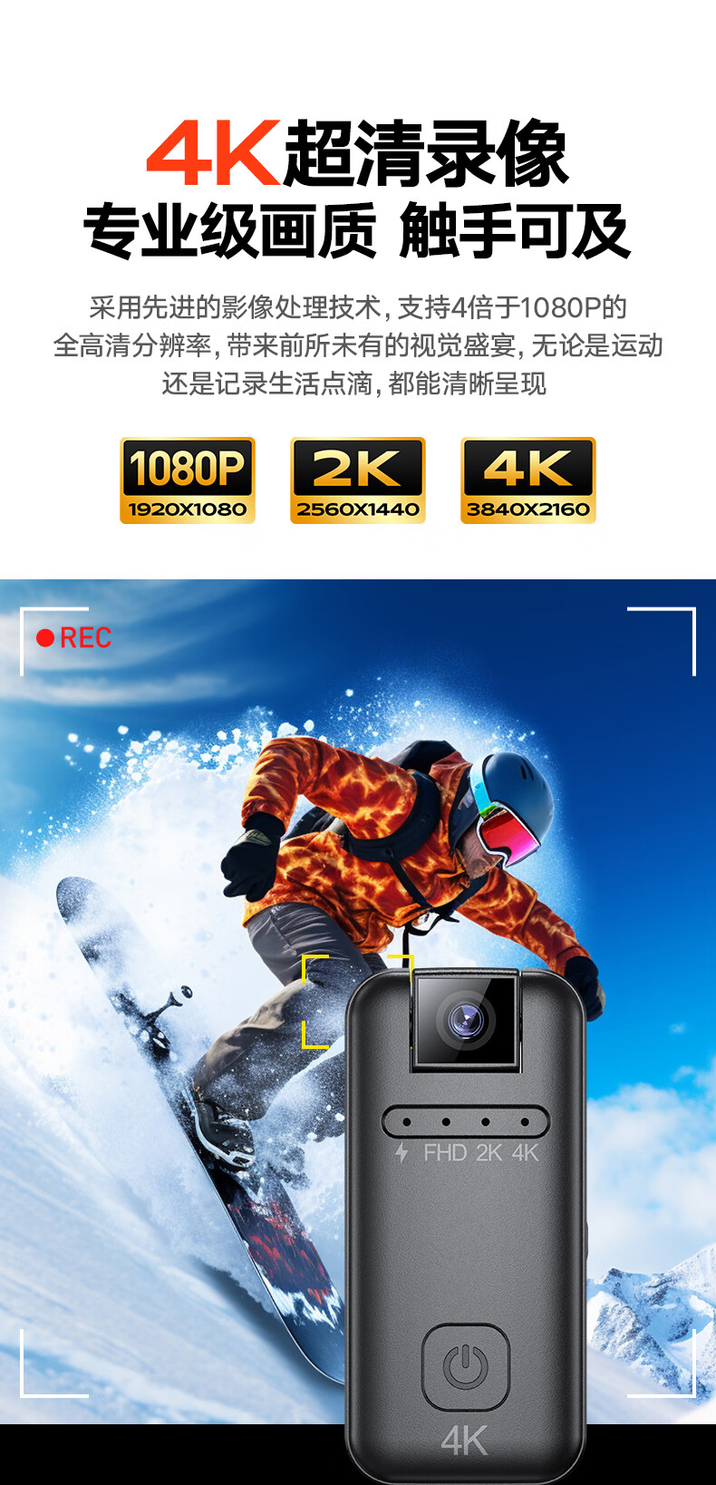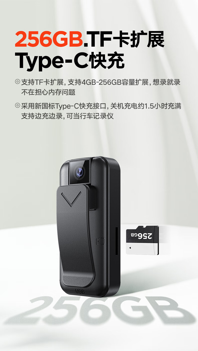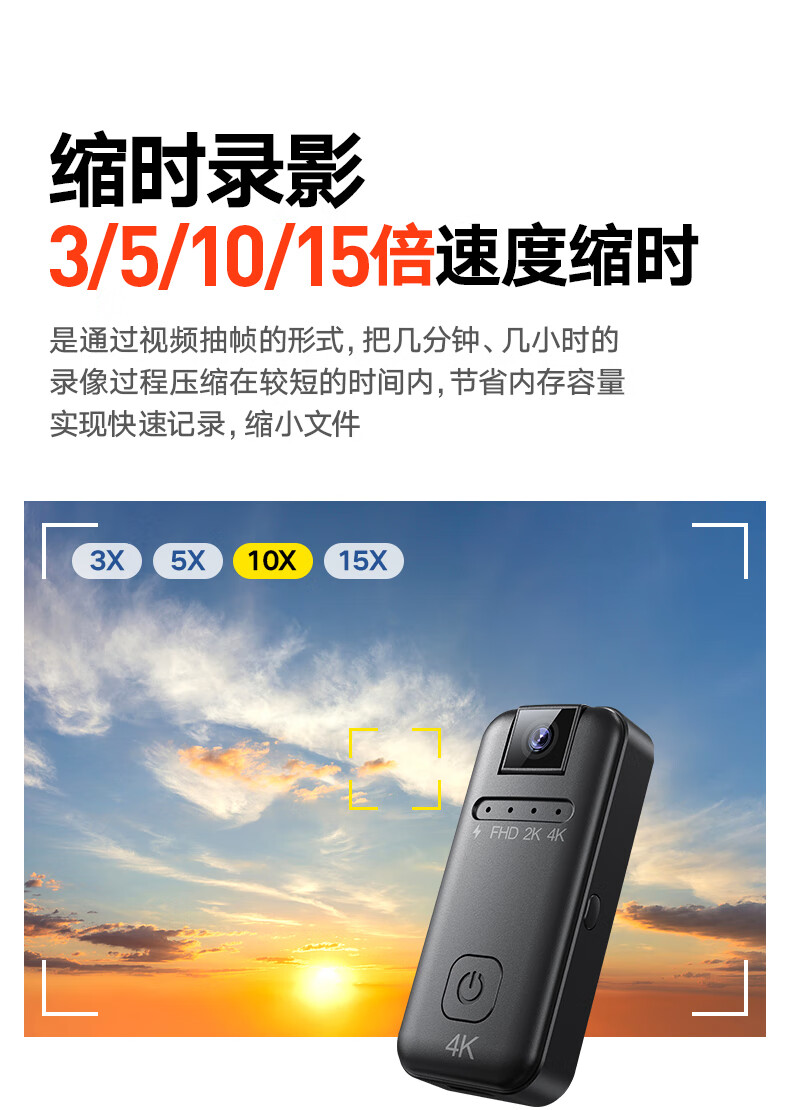 苏维高清4K运动摄像机摄像头随身记录仪便携式骑行摩托车户外录像机穿戴领夹式胸前口袋取证录像神器 4K高清摄像机 128GB内存版