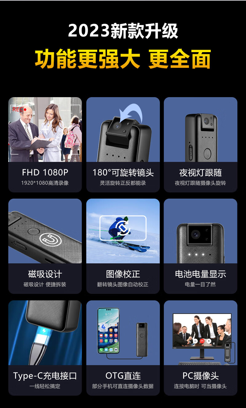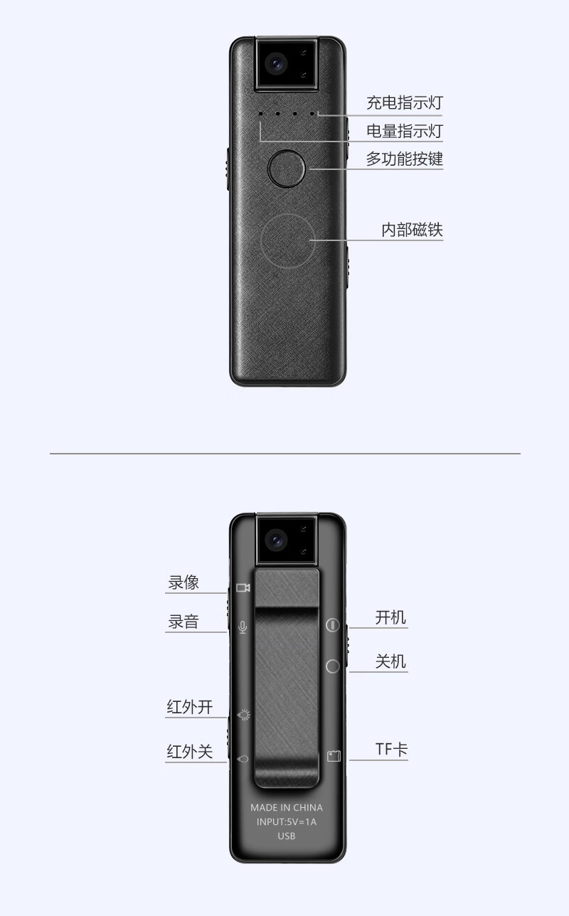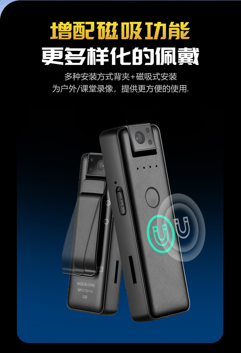 高清记录仪随身摄像机会议录音录像神器便携式胸前摄像头设备录像录音一体机 超清版 赠送转接线 读卡器 无内存版
