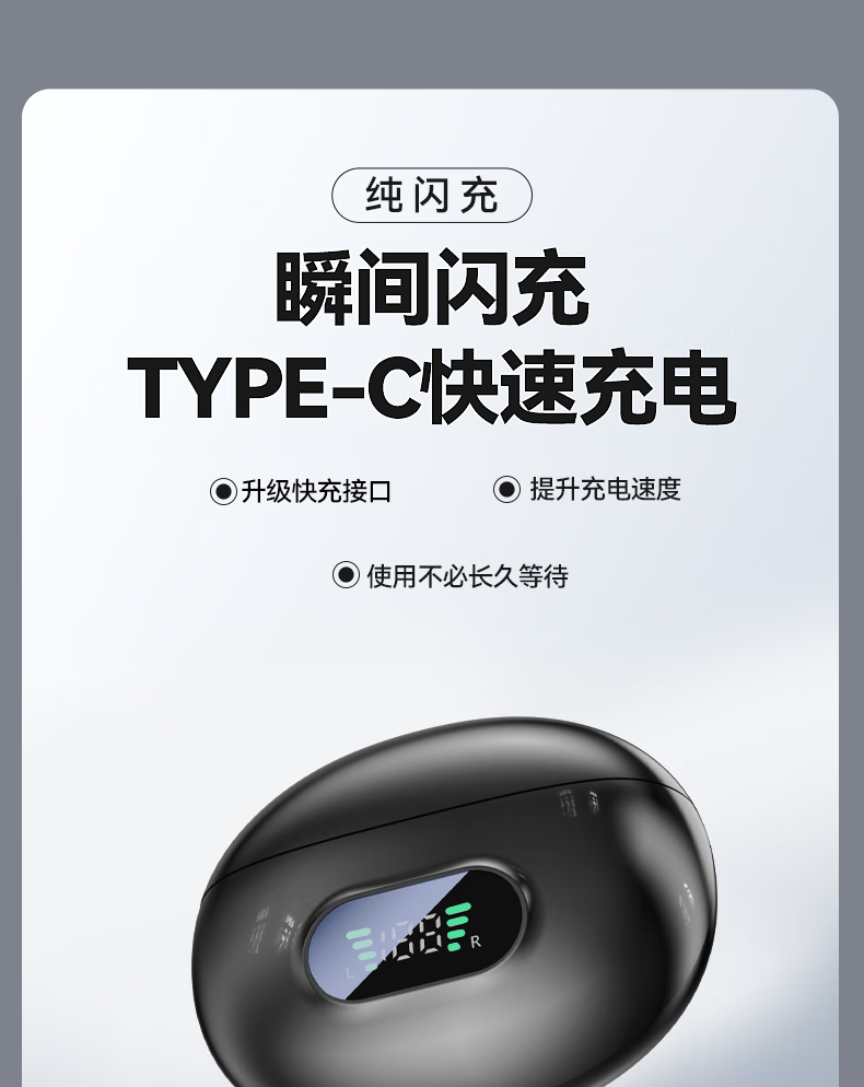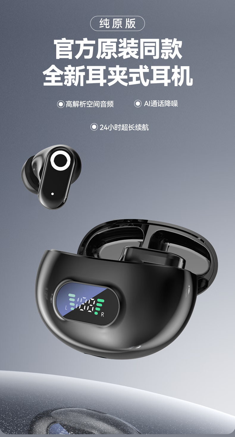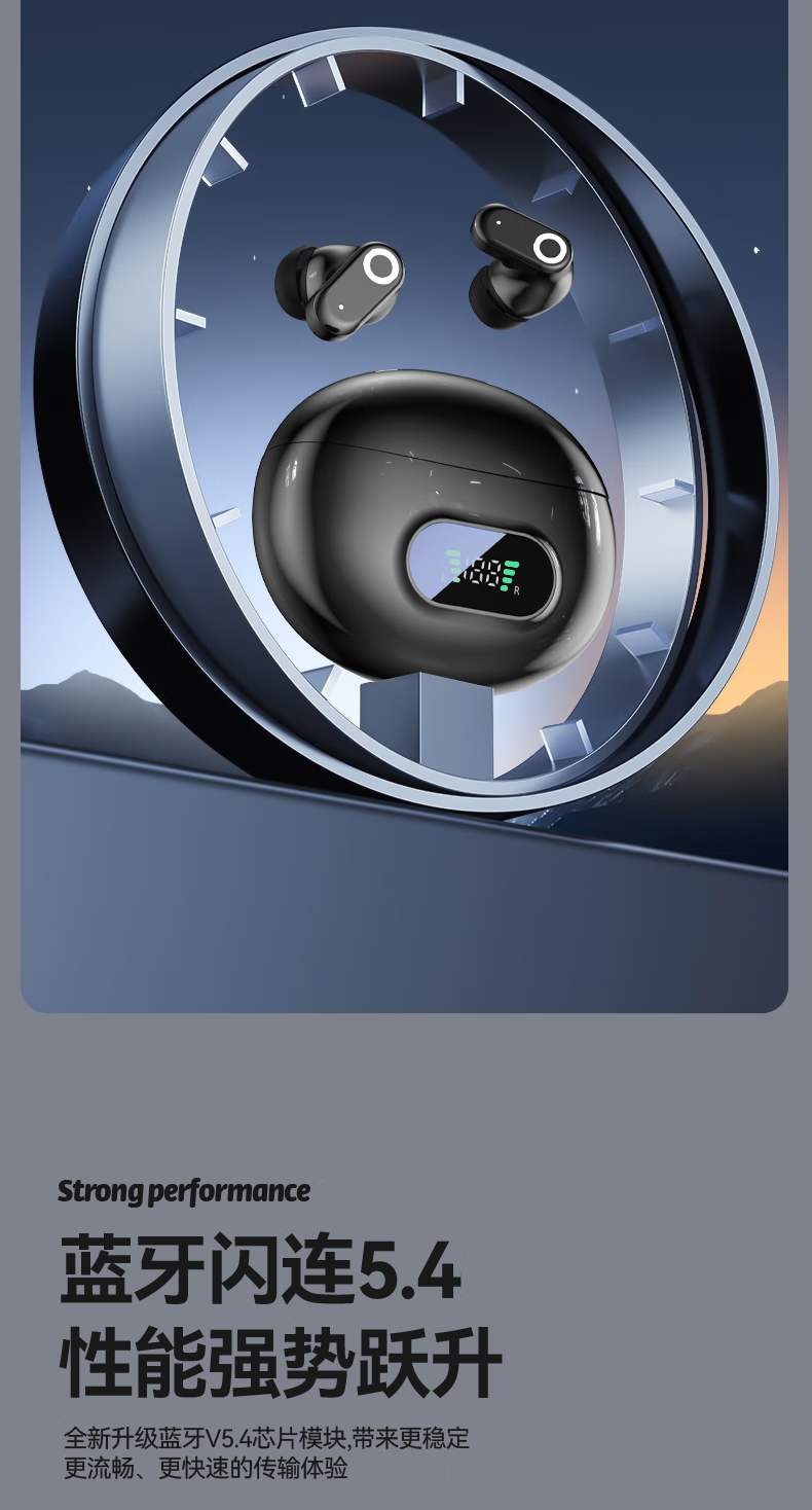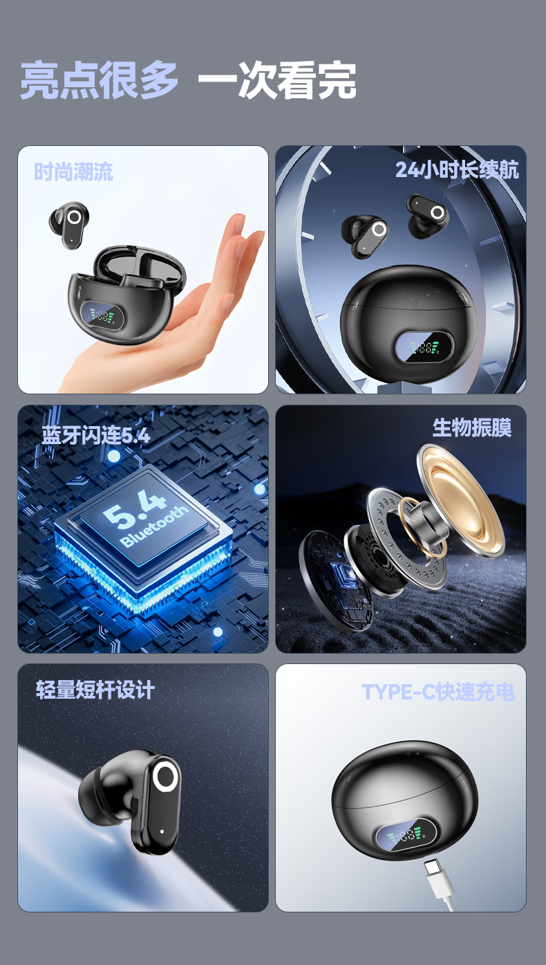超好麦【时尚潮流】蓝牙耳机 生物振膜技术 AI通话降噪 数显电量 TYPE-C快充 兼容华为vivo小米oppo苹果 墨影星辰【蓝牙5.4+高清无杂音】 【智能数显】+全景空间音效